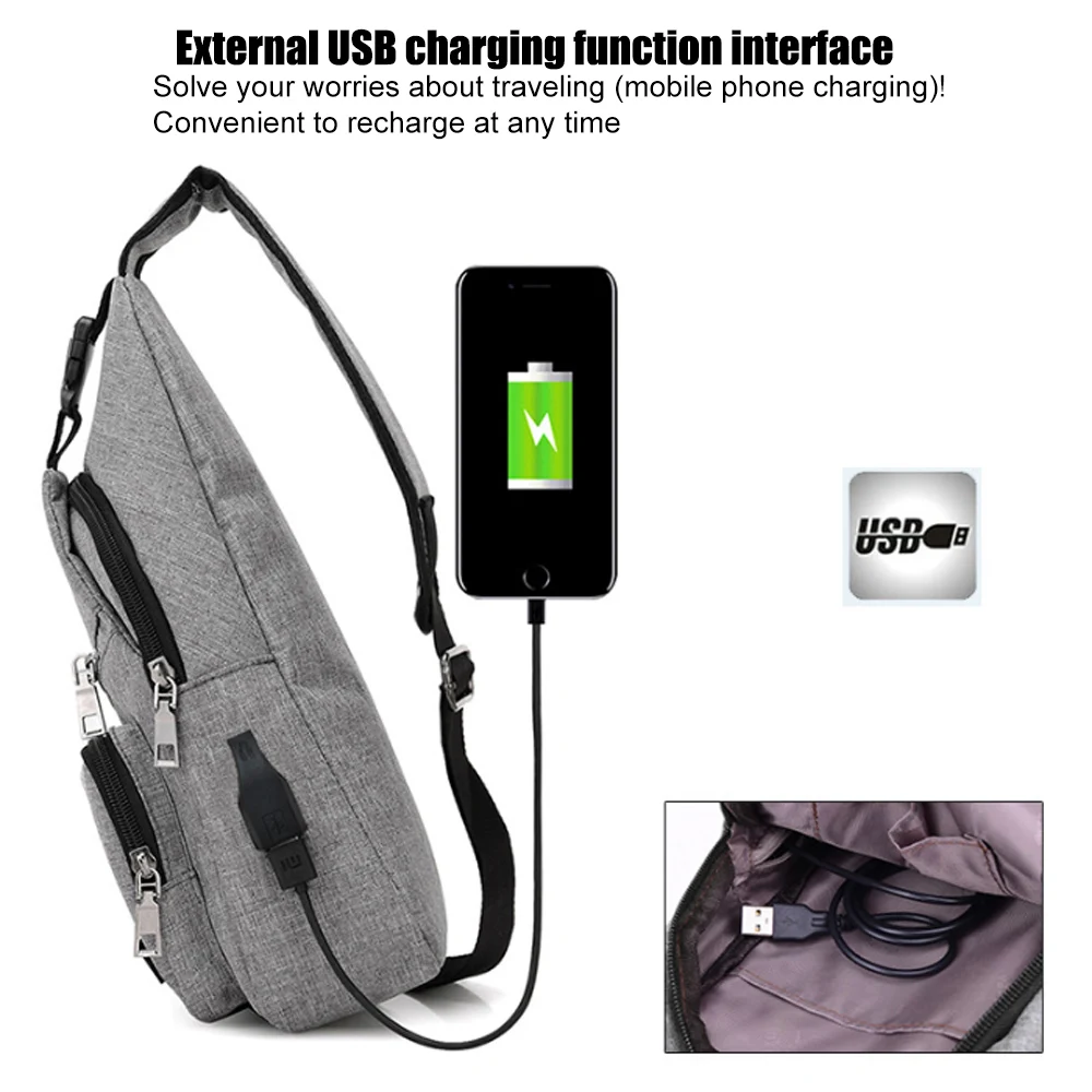 USB Charging Oxford Crossbody Bag Anti-theft Chest Pack Summer Short Trip Messengers Bag Water Repellent Shoulder Bag .